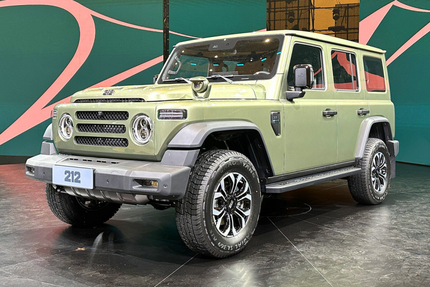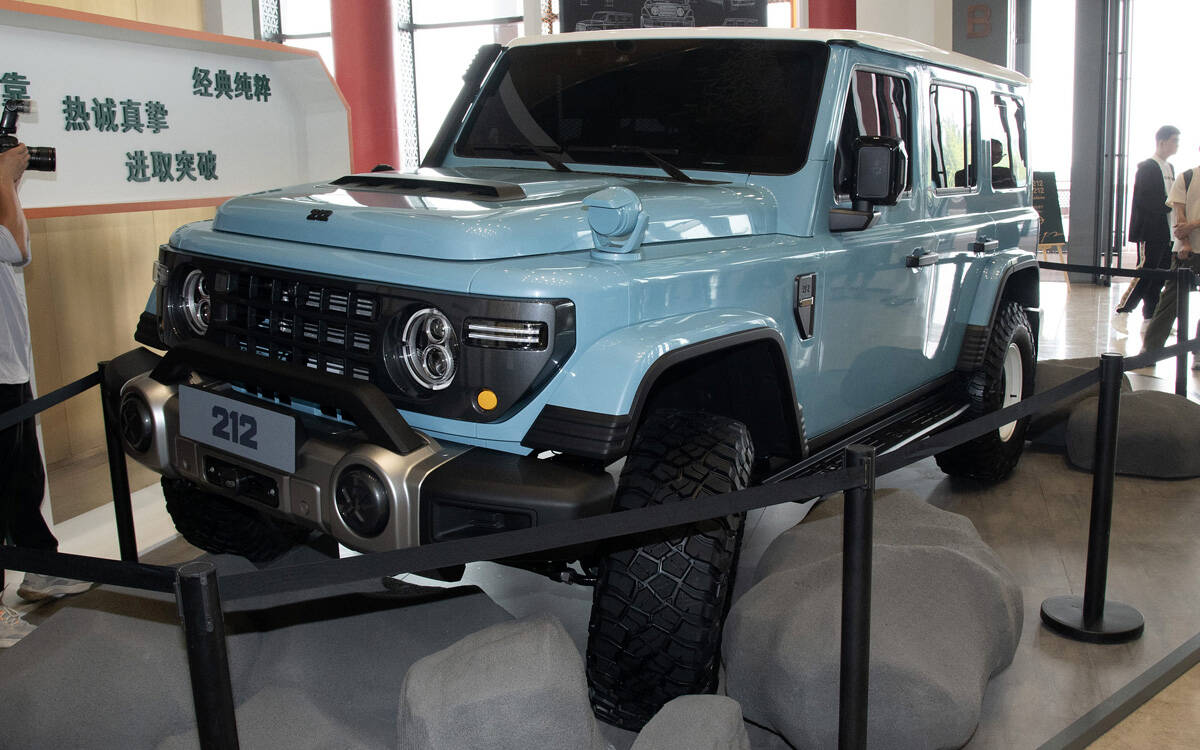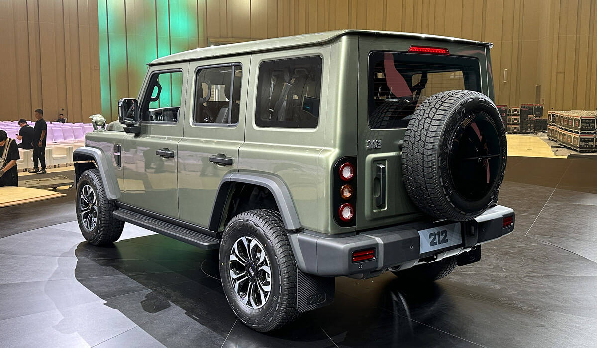 Подобно Гелендвагену, второе поколение китайского вездехода бережно сохранило узнаваемые черты предшественника. Полностью металлический кузов обладает фамильной поясной линией, выступающими крыльями, характерным капотом в виде перевернутой раковины и круглыми фарами (но со светодиодным наполнением). Сохранен даже такой сугубо армейский атрибут, как маскировочная фара-искатель на левом переднем крыле, хотя она тоже стала светодиодной.