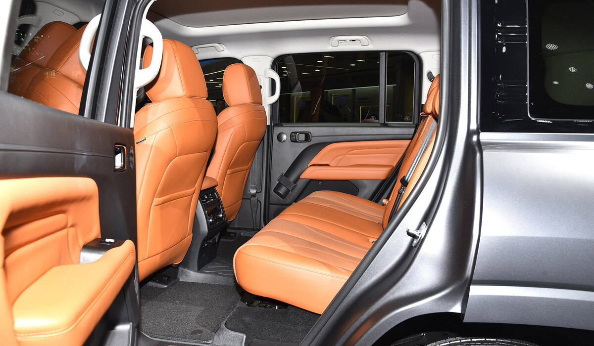 Наконец, одним из ключевых отличий от Танков стал более простой салон: Haval H9 имеет недорогой пластик отделки и кожзам на сиденьях. Хотя архитектура передней панели в духе времени: здесь приборный экран без козырька (12,3 дюйма) и большой «телевизор» медиасистемы (14,6 дюйма). Есть камеры кругового обзора, подогрев, вентиляция и массаж передних сидений. Объем багажника — от 791 до 1814 литров, а за доплату предложен третий ряд сидений.