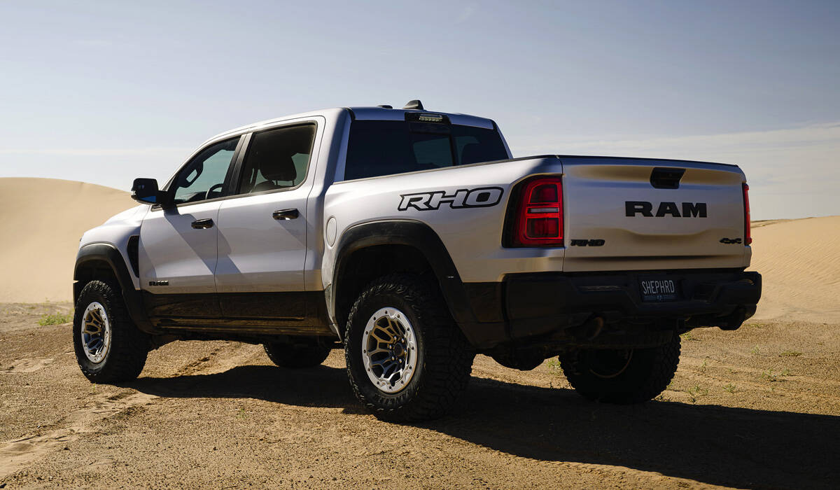 Внешне экстремальный Ram 1500 RHO отличается от своих гражданских собратьев капотом и решеткой радиатора с увеличенными воздухозаборниками, силовыми бамперами и мощной защитой днища, а также расширенными колесными арками. Сзади видны два крупных патрубка (диаметром 127 мм) спортивной выпускной системы. В салоне стали доступны новые комбинации отделки, а еще одна примета модификации RHO — табличка с индивидуальным номером прямо по центру подлокотника.